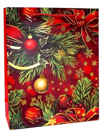 ПродукцияПакеты подарочные Бумажные новогодние подарочные пакеты из плотной матовой бумаги с золотым тиснением, серия "Праздничное настроение", размер 31*42*12 см.