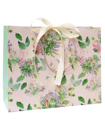 ПродукцияПакеты подарочныеГоризонтальные бумажные подарочные пакеты из плотной матовой бумаги с рисунком и лентами, серия "Полевые цветы", размер 32*26*11 см.