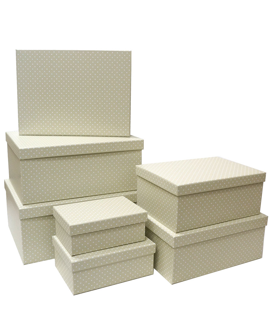 Набор из семи прямоугольных подарочных коробок, отделка матовой бумагой с рисунком "Мелкий горошек на серо-бежевом фоне", размер 35*27*16 см.